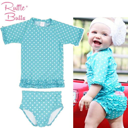 Ruffle Butts(ラッフルバッツ)ポルカドット ラッシュガードビキニ [アクアブルー] 95cm水着 スイムウエア ツーピース ベビー 赤ちゃん 出産祝い 半袖紫外線遮蔽率50+(UVカット率 最高値)最終値下げ 送料無料