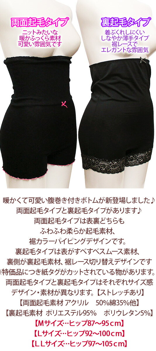 2デザイン【両面起毛or裏起毛】あったか腹巻き付きボトム♪お腹暖かキュートなハラマキ付きパンツ♪【レディース 婦人 肌着 下着 防寒保温】[春物][秋物][冬物]
