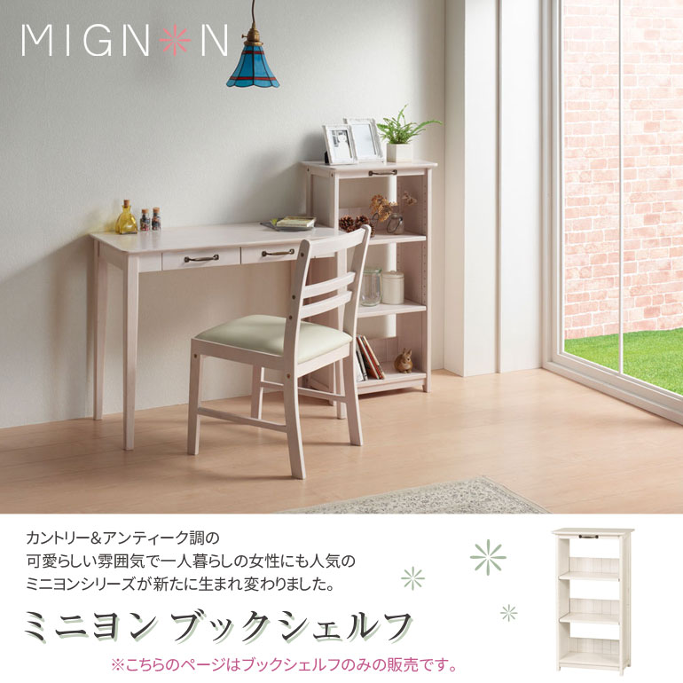 MIGNON ミニヨン ブックシェルフ 商品説明カントリー&アンティーク調の可愛らしい雰囲気で一人暮らしの女性にも人気のミニヨンシリーズが新たに生まれ変わりました。