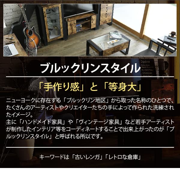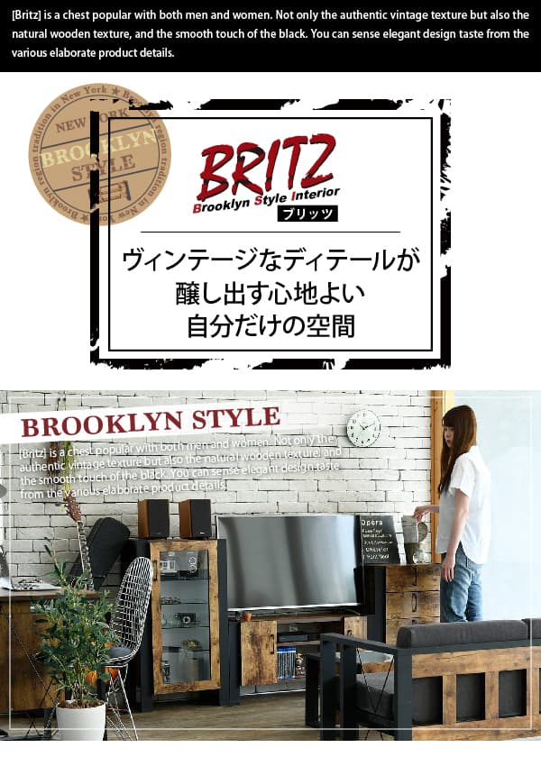 ■商品説明 カフェの雰囲気を演出できる、ヴィンテージ風シートがおしゃれなブルックリンスタイルのチェスト。