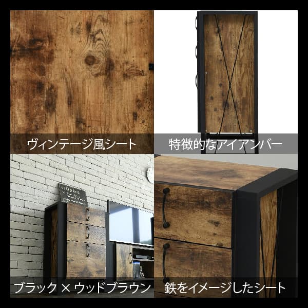 ■商品説明 カフェの雰囲気を演出できる、ヴィンテージ風シートがおしゃれなブルックリンスタイルのチェスト。